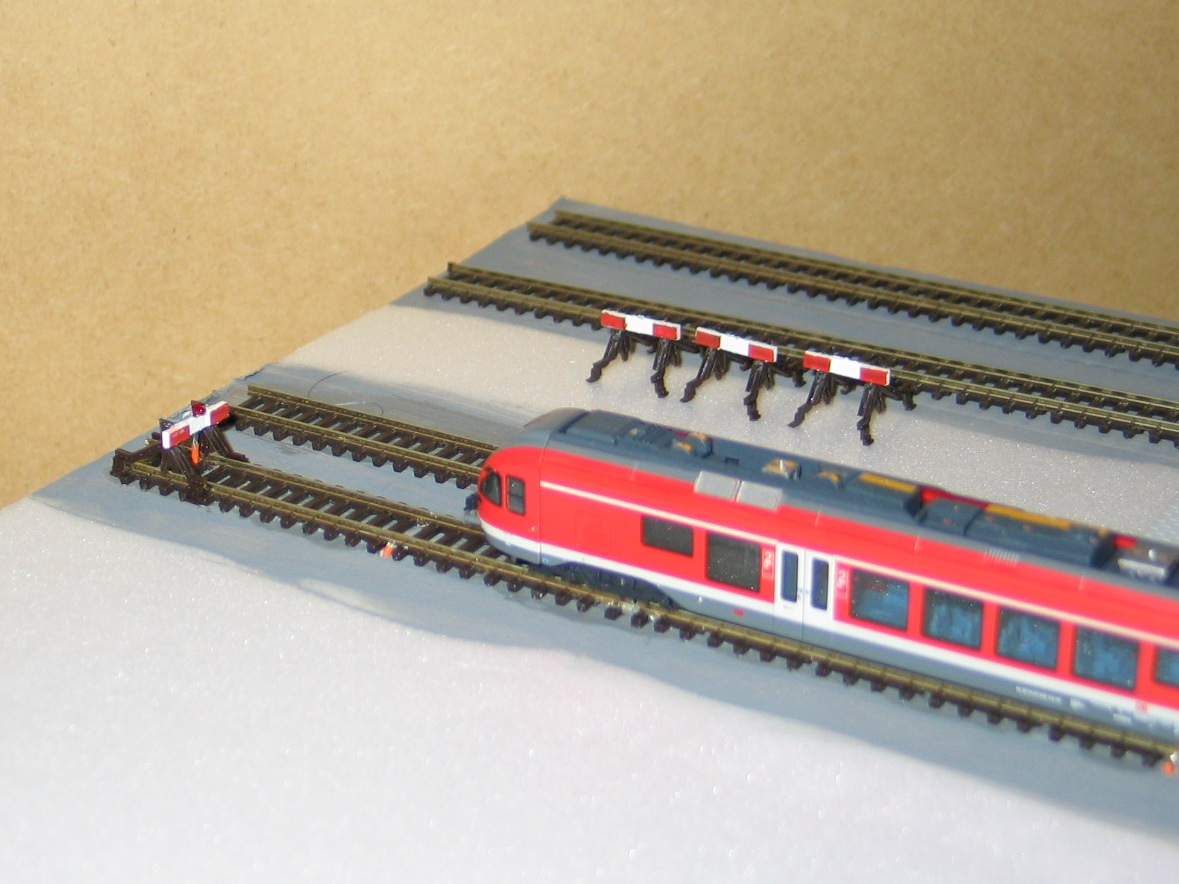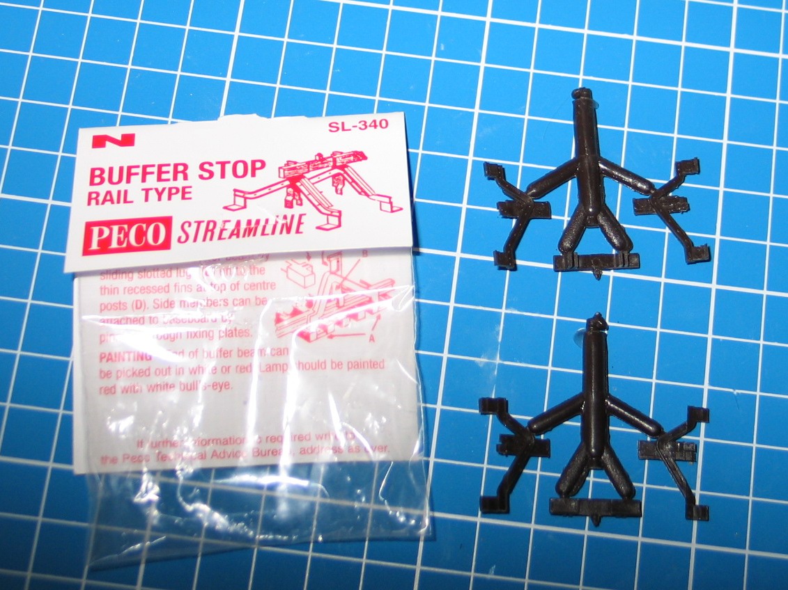 J’ai choisi les heurtoirs du fabriquant Peco ; que j’ai commencés par repeindre (Humbrol 130 & 174).